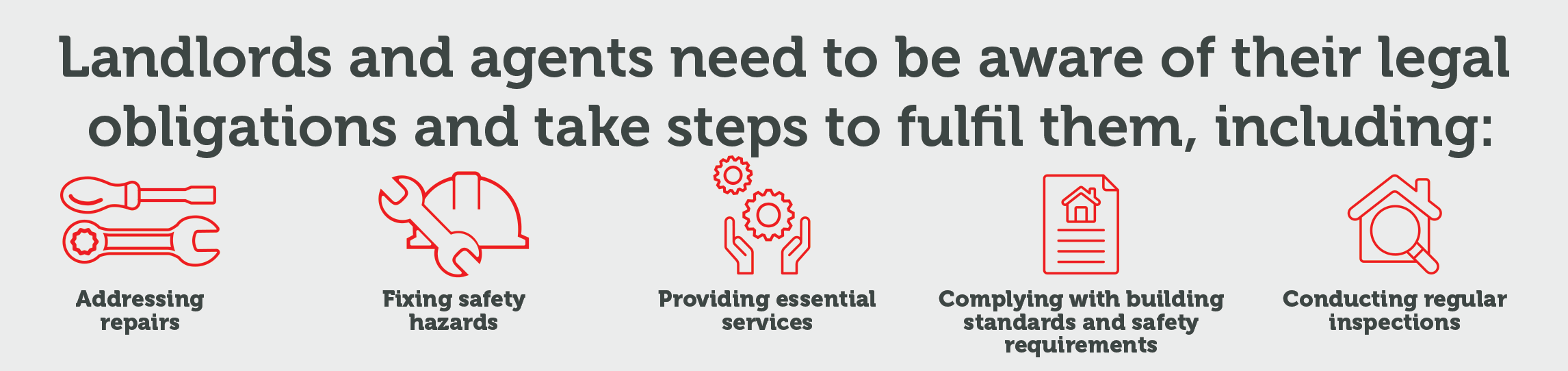 In addition, landlords and agents have an obligation to arrange for urgent repairs necessary to avoid exposing a person to risk of injury.
